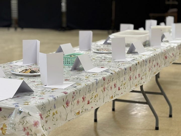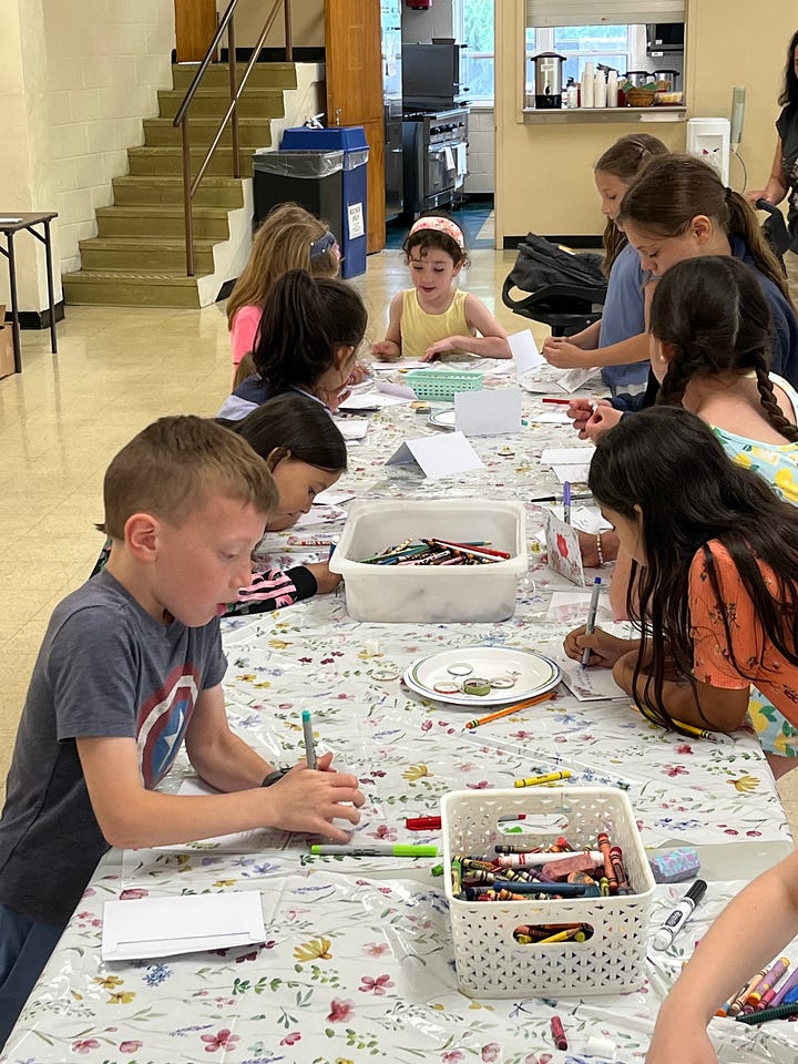 The children were so willing to participate in a conversation about the book and what we can learn from it. They listened beautifully as I read. And then they had a great time making cards at the table one of my sons helped me set out ahead of time. The party went an hour longer than I anticipated!